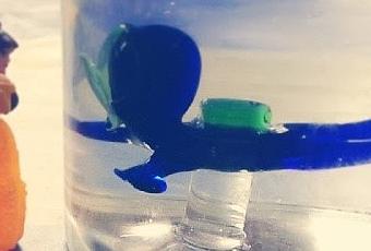 Allí estaba Bella mirando con pena a un buceador dentro de una botella. Imagino que la historia con Bestia no acabo bien, siendo un personaje Disney no la imagino teniendo una aventura. De todas formas lo de Bella y Bestia se veía venir, pertenecían a especies distintas.... y ¿Dónde a puesto sus esperanzas?...En un buceador. Por lo menos ahora son de la misma especie, pero el pobre buceador esta dentro de la botella, pegado a ella y sin poder/querer salir.