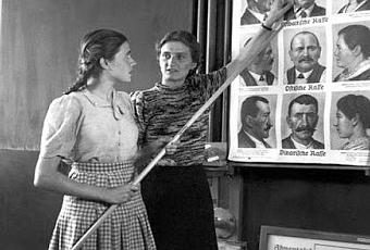 Los Nazis hicieron todo lo posible para inculcar en los jóvenes alemanes el orgullo de su raza a través de la enseñanza de la biología racial. La Liga Nacional de Maestros Nacionalsocialistas (NSLB), en particular, enseñó en las escuelas que deberían estar orgullosos de su raza pura y no de la mezcla racial.La biología racial tenía como objetivo alentar a los alemanes a mantener la pureza de su raza, el NSLB enfatizó en las escuelas primarias el elemento racial nórdico del Volk (pueblo) alemán, para ello tenían que contrastar este con las diferencias raciales que representan los pueblos considerados como extranjeros, como los judíos.