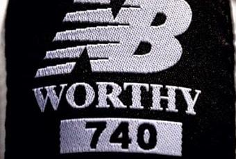 Su logo es fácilmente reconocido por todos los corredores. En él, podemos observar las dos letras de su nombre NB (New Balance) y el nombre completo debajo en color blanco, con un fondo en rojo. Lo más llamativo, son las "espinas" que atraviesan a la NB, que representan la suela serrada de las zapatillas.