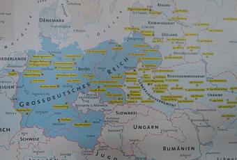 Hace un tiempo fui de visita al Obersalzberg, uno de los lugares de Bayern en los que Hitler pasó parte del tiempo en que no se encontraba en Berlín. Allí me hice con la foto de un mapa de los principales campos de concentración del régimen nazi, conocidos en alemán con las siglas KZ (= Konzentrationslager), que os vuelvo a enseñar aquí: