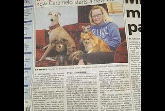 Caramelo fue tiroteado , recogido lleno de perdigones, dejándose morir a pesar de haber perdido una manita a causa del maltrato recibido, Caramelo es más feliz de lo que ha sido en toda su vida, ha sido adoptado en Inglaterra... y hasta sale en el periódico