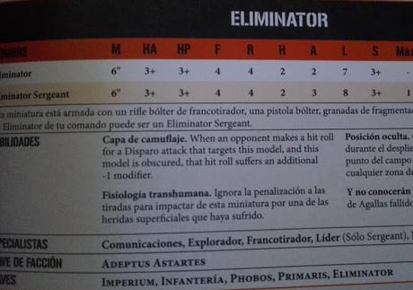 El la entrada de los Eliminator Primaris (Que salieron en Shadowspear). Han mezclado trozos en inglés con la parte en español y en la parte en inglés han metido algo en español. Ya hay club de fans de ka frase "hit roll for Disparo Attack" y todo...