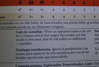 El la entrada de los Eliminator Primaris (Que salieron en Shadowspear). Han mezclado trozos en inglés con la parte en español y en la parte en inglés han metido algo en español. Ya hay club de fans de ka frase "hit roll for Disparo Attack" y todo...