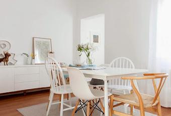 Hace poco terminó con la decoración de su piso de alquiler de 70 m² y me mostraba orgullosa las fotos de su hogar. Margot vive con su marido en Ventas, en Madrid, en un piso de 3 habitaciones de las cuales una hace las veces de salón (con zona de estudio) y otra de vestidor y para el comedor ha utilizado una sala que era zona de paso, que no puede ser mejor forma de aprovechar el espacio y la verdad, no puede haber quedado mejor, es el corazón del piso.