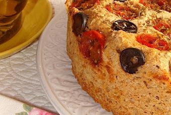 3. AL CABO DE UNOS 20 MINUTOS, PONER ENCIMA DE LA HOGAZA LOS TOMATES CORTADOS POR LA MITAD, LAS ACEITUNAS Y EL ORÉGANO Y DEJARLO LEVAR HASTA QUE DUPLIQUE SU VOLUMEN. HORNEAR A 180º DURANTE UNOS 40 O 45 MINUTOS DEPENDIENDO DE CADA HORNO.