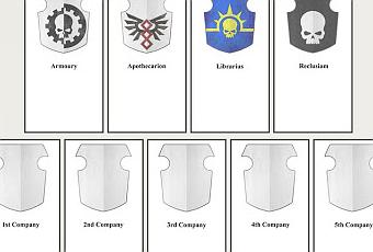 Nuestro compañero The Warhammer Modeller ha colgado desde su cuenta de Twitter, algo que supongo vendrá muy bien para a los que les guste cuidar el trasfondo de su ejército de Astartes leales. Básicamente, es una hoja de organización para un Capítulo de Marines Espaciales, con escudos en blanco para hacer la heráldica y colores de cada compañía de la 1ª a la 10ª, y con espacio debajo para apuntar la composición en escuadras, vehículos y mandos de cada compañía, y hacer un seguimiento de cada una,