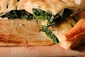 1 hoja de hojaldre2 bolsas de espinacas frescas150 gr de queso feta cremosaun poco de mantequilla para untarsal, pimienta