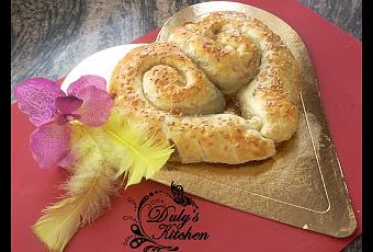 Hoy os traigo un Hojaldre con queso, membrillo y cebolla caramelizada. Es una perfecta combinación de sabores que crean un exquisito bocado. Como está tan próximo San Valentín le he dado forma de corazón pero vosotros podéis hacerlo en trenza o como más os guste. Con ésta receta tendréis un rico aperitivo, una dulce merienda o una rica cena acompañándolo de una ensalada como Ensalada de canónigos, granada y queso o Ensalada con manzana y queso azul.