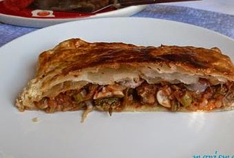 Nunca había comprado butifarra fresca pero el otro día me dijo mi carnicero que habían traído nuevas y que si quería una para probar. No sabía muy bien como utilizarla así que me decanté por meterla en hojaldre con las verduras de que disponía en ese momento en la nevera. Lo bueno es que se pueden poner las que tengamos o las que nos gusten. Y me encantó el resultado, hoy lo comparto con todos vosotros.