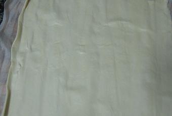 Antes de nada encendemos el horno a 200º C si tiene ventilación ó a 220º C si no la tiene, para que vaya calentándose. Empezamos estirando la masa de hojaldre, fresca en este caso, aunque supongo que valdría igual si fuese congelada.
