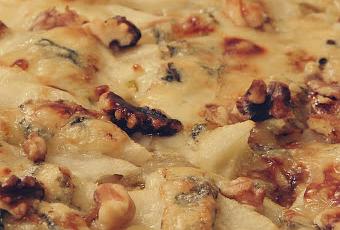 - Cortad el Gorgonzola a dados y disponedlo sobre la pera