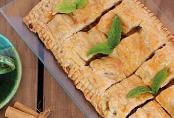 Doblamos cubriendo las manzanas y sellamos los bordes con un tenedor. Pintamos con huevo batido y horneamos unos 20 minutos aproximadamente.