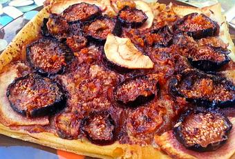 - Precalentamos el horno y horneamos el hojaldre 15 minutos a 200ºC hasta que la pasta esté crujiente y la fruta se dore.
