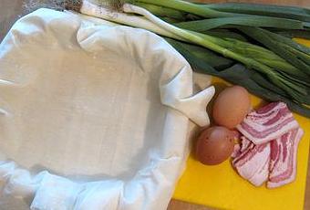 En primer lugar, limpiamos y cortamos en rodajas los puerros, y picamos las lonchas de bacon en tiras finas.