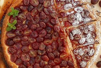 Ingredientes500 gr. de uvas1 lámina (plancha) de hojaldre2 cucharadas de azúcar moreno1 huevo batido (para pintar)azúcar glas y hojas de menta para decorar