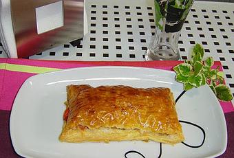 Los hojaldres se parten por la mitad, se les hecha la escalibada, un trozo (o varios según tamaño) de queso y se tapa con el otro hojaldre y al horno 10 minutos más.