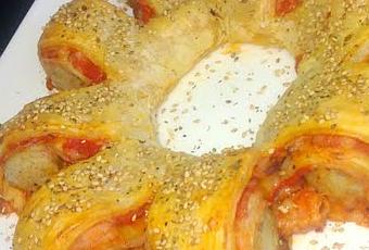 Hacemos un círculo y unimos los extremos. Pintamos con huevo batido y espolvoreamos con orégano y las semillas de sésamo.