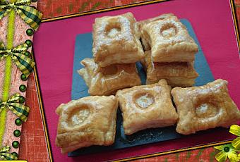 Hoy os traigo algo dulce para merendar con unos hojaldres como los de Astorga, que son riquísimos y muy fáciles de hacer.Yo le dado un toque a la receta.INGREDIENTES:1 lámina de hojaldre250 ml de agua350 gr de azúcar5 cucharadas de miel con crema de avellana ALEMANYEl zumo de medio limónELABORACIÓN:Precalentaremos el horno 190º y lo primero que haremos será cortar el hojaldre en cuadraditos, yo utilizado unos corta galletas.Luego haremos un corte en el centro, para que empapen mejor el almíbar. Podéis utilizar ,un descorazonador de manzana, o lo que tengáis a mano.Los colocaremos separados en la bandeja del horno, sobre papel y horneamos unos 20-25 minutos, hasta que estén doraditos.Mientras, haremos el almíbar con el agua, el azúcar, la miel y el zumo del medio limón. Cuando empiece a hervir, dejamos a fuego medio-fuerte, durante 5 minutos,bajaremos la temperatura.Sacaremos los hojaldres y dejaremos enfriar. E iremos pasándolos por el almíbar. Unos segundos por cada lado, y dejaremos enfriar sobre una rejilla. Y ya los tendremos listos para degustar.