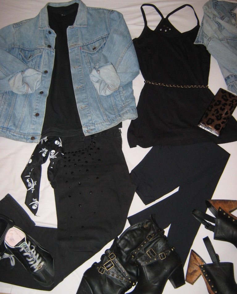 Chico: remera kevingston- campera de jean levi's- jean negro con tachas ona saez- pañuelo calaveras- zapatillas puma. Chica: minivestido ayres- cinto vintage- campera de jean maría vazquez- sobre animal print- leggins class life- botas con tachas anca & co- zuecos de madera tropea.