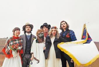 Por otra parte, llegué a contar unos veinticinco instrumentos que tocaron entre cuatros músicos. Instrumentos muy vintage, más que nada porque algunos parecían rescatados de la etapa colegial: flautas, flautines maracas, xilófonos, panderetas, castañuelas, crótales, palos de lluvia, clave, triángulo… Todos estos intrumentos de percusión se mezclaron con el violín, el acordeón, el banjo, la guitarra, el teclado e incluso el sintetizador. En resumen, todo muy folk.