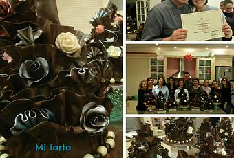 En medio de ese proceso gripal y bastante drogada de paracetamol para poder aguantar todo el día, asistí al curso que Paul Bradford dio en Alma's Cupcakes de su famosa tarta de Chocolate. Me lo pasé chachi, Paul es un tio majísimo, aluciné de como maneja el chocolate plástico, la rapidez con que te hace una rosa, nos estuvo contando anécdotas de tartas que él había hecho, Alma nos estuvo ayudando a las más torpecillas jeje, tuve unas compis geniales y salimos de allí con jartura de chocolate por una temporada jajaja