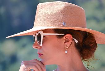 Como son también los vestidos blancos acompañados de complementos de materiales naturales como son una cesta de paja y un sombrero de paja, al que le añadimos un toque metalizado en brazalete y en sandalias para elevar aún más el look.