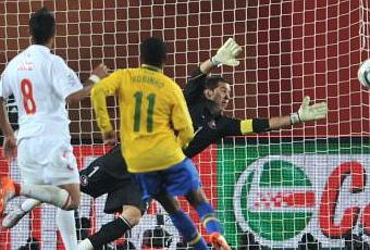 Brasil no necesita más de tres jugadores en el campo contrario para crear peligro. Eso le permite poblar su campo y exigir al contrario mucho: Velocidad, regate, tiro a puerta... Chile no cuenta con esas armas. Tiene otras, pero no esas. Con esto así y obligados a atacar, Chile se ve frenada muy pronto y rara vez entra al área contraria, con lo que pierde el balón demasiado cerca de su centro del campo, que tampoco brilló ante Brasil. En el final del primer tiempo Chile se veía fuera.El segundo tiempo empezó aburrido. Más de lo mismo. Más goles de de Brasil. Lo que les digo, los brasileños saben desbordar con pocos espacios y Robinho hizo el tercero en jugada anterior en la que Ramires tira para si a cuatro defensas contrarios. Partido cómodo para Brasil. Chile se desfonda. Para mi, el mejor de la canarinha esta siendo Robinho. Chile, nada que hacer. Una pena. En el minuto 73 dejé de ver el partido.