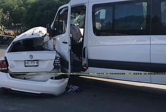 El vehículo fue impactado por una camioneta de transporte de personal de marca Mercedes Benz de color blanco, la cual arrastró el vehículo varios metros.