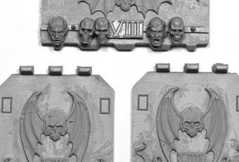 La contrario de los Amos de la Noche,los hijos de Lorgar tienen un set de puertas de Rhino por 11,50 libras con su heráldica.Aunque si os fijáis las puertas laterales son calcadas a las de los Land Raiders.De hecho,son las mismas diría yo,que las del set II de LR.Igual se les han colado al fotografiarlas...