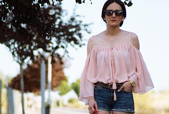 Difícil no caer rendida ante una de las tendencias más fuertes y estilosas de la temporada. Yo me he hecho con algunas blusas este verano y son muy cómodas.Esta rosa con mangas anchas es de New Dress y la llevo con shorts y sandalias vintage planas de cuero. Muchas gracias