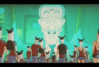 Comenzamos con "Homeless", la opera prima de estos tres sujetos nombrados, una película de animación además. Una película que pretende ser incorrecta, de humor negro, pero que de principio a fin es un producto carente de imaginación, blando, inofensivo, inocuo, insulso, somero, apenas pasable, que pareciera tener muchas ideas o intenciones sin que logre combinarlas en un todo coherente, y si coherente es pedir mucho, tampoco logra algo medianamente inteligible. La historia es un cúmulo de inconexos sinsentidos que es bastante complicado de ver por la simple razón de que el argumento no existe (y si existe, ciertamente carece de consistencia), el hilo conductor que debería guiarnos es un enredo que nadie se molesta en intentar ordenar un poco. ¿El argumento? Un grupo de vagabundos se preparan para la navidad, la época en que pueden conseguir mayores cantidades de comida, ya que todas las buenas familias compran más y, por ende, desechan más a la basura, que es en donde nuestros vagos se alimentan. Pero la sociedad se va al demonio porque unos hackers eliminan el dinero (todo en una conspiración muy a lo "Mr. Robot", como uno de los personajes admite), la gente se vuelve loca, aparece un trasunto de Walt Disney que quiere controlarlo todo con su estética filonazi, y un niño millonario (el vivo retrato del actual ministro de educación) infeliz con sus montañas de billetes se convierte en la clave de todo. Así, sin ton ni son, al tún tún, con personajes sin peso ni entidad ni una mínima construcción dramática (los objetivos surgen y varían de manera arbitraria, a menudo contradiciendo lo anterior, lo cual pareciera proba que se iban inventando las cosas durante el camino), y una crítica social y hasta filosófica con menos inteligencia que una piedra, "Homeless" avanza sin poder capturar el mínimo interés porque sus personajes apestan, su cambiable argumento apesta, su mensaje y moraleja apesta por plano y superfluo (y tiene un tufo medio conservador, ojo), su sentido del humor apesta y sus objetivos apestan a medida que se desinflan inevitablemente. Nada tiene sentido, lo que se nos cuenta es una soberana estupidez. Una película verdaderamente inenarrable. Es como si fueran malos a propósito, no lo entiendo. Y aunque no debería criticar mucho esta parte (quizás), su animación deja bastante que desear, aunque ni con más presupuesto esta película mejoraría. Ni siquiera se puede decir que sea una buena idea mal hecha, es que es mala con ganas, ni siquiera es una idea, ideas es lo que menos tiene "Homeless".