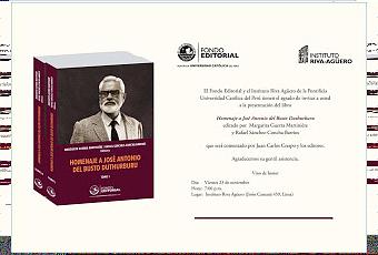 Están cordialmente invitados a la presentación de los dos volúmenes del Homenaje a José Antonio del Busto Duthurburu editado por Margarita Guerra Martinière y Rafael Sánchez-Concha Barrios, que será comentado por Juan Carlos Crespo y los editores este viernes 23 de noviembre a las 7:00 p.m. en el Instituto Riva Agüero —Jirón Camaná 459, Lima.