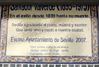 Salvador Valverde se volvió a Málaga por problemas de salud de su padre, padre que murió al poco tiempo. Al quedarse huérfano de padre y madre con 7 años, Valverde se viene a Sevilla a vivir con un tío, empleado de Banca, criándose aquí y haciéndose poeta y letrista. Vivió en la calle Feria y en la Plaza de los Terceros.Luego, establecido en Madrid, vino la triunfal colaboración con el poeta Rafael de León y con el maestro Quiroga, trabajo que rompió la guerra, que le sorprendió con su colaborador en Barcelona. Allí a Rafael de León lo meten en la cárcel y Valverde se hace dirigente del Sindicato de Artistas de la UGT. Cuando los nacionales tomaron Cataluña, cruzó a pie la frontera y fue a parar a París. Antes que los alemanes tomaran la capital francesa, se embarcó con su familia en el vapor «Massilia» rumbo a Buenos Aires. Se estableció en la Argentina, mas siempre pensando volver a España. Esperando. Espera demasiado larga. Murió en 1975, tres meses antes que Franco. Nunca volvió.Sigue leyendo >>>