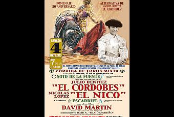 El espectáculo está programado a las siete de la tarde y antes de que las cuadrillas inicien el paseíllo, integrado por los matadores de toros, Julio Benítez ‘El Cordobés’ y Nicolás López ‘El Nico’, a los que acompañará el novillero David Martín, el ayuntamiento descubrirá un azulejo en este coqueto recinto taurino que servirá como recuerdo homenaje a que este año se cumple el cincuenta aniversario de la alternativa de Manuel Benítez Pérez "El Cordobés", que como recordarán fue en el desaparecido Coso de Los Tejares de Córdoba el 25 de mayo de 1963, siendo el padrino Antonio Bienvenida y el testigo José María Montilla, lidiándose ganado de Samuel Flores.