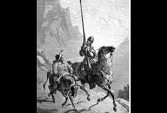 Diálogo entre caballero y escudero - Mire vuesa merced que esos que llama molinos son gigantes, que las mozas de la venta no son rameras sino princesas, que los pellejos de vino son desaforados malandrines y que, por obra de un encantamiento, un ejército de temibles soldados viene a mostrarse engañosamente como un rebaño de pacíficas ovejas. - Bien se ve, amigo Sancho, que has perdido el juicio y que de tanto comer cebollas y ajos crudos se te ha secado el cerebro, que no hay cosa peor que un atracón con este sol de Dios y con el vino caliente que llevas en la bota. Dejemos las cosas como están: molinos, furcias, pellejos y rebaños. No demos oportunidad al diablo, que ya vendrá algún desaliñado escribidor a inventar historias descabelladas con las que ganar algún maravedí para llenar el puchero. Que los tiempos son duros. Y a buen entendedor pocas palabras.