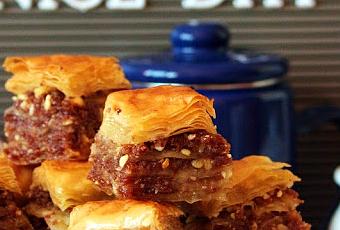 - Cortamos el baklava con la forma deseada y horneamos durante 1 hora y 15 minutos. La superficie debe quedar dorada.
