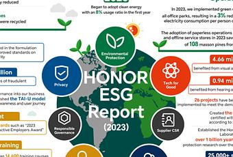 HONOR prioriza los principios ESG en siete áreas clave: Protección Ambiental, Tecnología para el Bien, Privacidad, Empoderamiento Juvenil, Responsabilidad Social de los Proveedores, Desarrollo de Empleados y Gobernanza Responsable. “Comprometidos con un desarrollo sostenible centrado en el ser humano, HONOR se esfuerza por fomentar una empresa innovadora, abierta e inclusiva. Nos esforzamos por crear un nuevo mundo inteligente para todos”, declaró George Zhao, CEO de HONOR Device Co. Ltd.