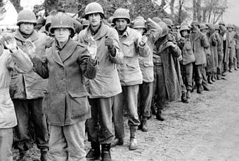 -Créeme cuando te digo que realmente tuvimos que bajar la cabeza. Esto no era un picnic”- escribió Edmonds en su diario de guerra. Pero el rescate llegó demasiado tarde para el 422º regimiento; la Segunda División Panzer de los SS de Alemania los rodeó, y el 19 de diciembre, Edmonds fue uno de los miles de estadounidenses tomados prisioneros.
