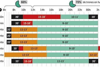 Desde el pasado sábado 13 al sábado 20 de abril funcionará el 60% de los trenes hasta las 12:00 y el 70% de estos desde las 12:00 hasta el cierre del servicio. El Jueves Santo se inicia el servicio a las 7:30 y se presta de modo ininterrumpido durante la Madrugada. Los servicios mínimos para el Metro de ...