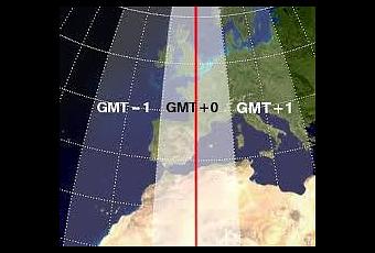De entrada la asignación de la hora oficial del estado a GMT+1, es decir, una hora antes de la que marca el famosísimo meridiano de Greenwich resulta un despropósito geográfico, cuyo origen está en una disposición del gobierno provisional golpista del general Franco durante la Guerra civil española. La preferencia por mantener el mismo horario que el III Reich llevó a adelantar una hora la que mantenía el gobierno de la República. El meridiano de Greenwich “entra” en territorio español más o menos por Broto–de donde proceden mis antepasados–en la provincia de Huesca, cruza la autopista de Zaragoza a Barcelona cerca de Bujaraloz, y “sale”, hacia el sur, por el Grao, el puerto, de Castellón. En efectividad, del territorio del estado, sólo las Baleares y Cataluña están al este del meridiano “0”. El huso horario GMT abarca casi la totalidad del territorio (ver imagen ahí al lado).