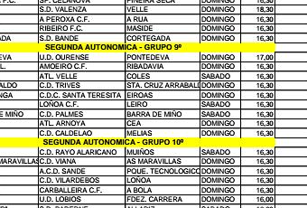 Horarios del fútbol ourensano, 12 y 13 de Marzo 2106