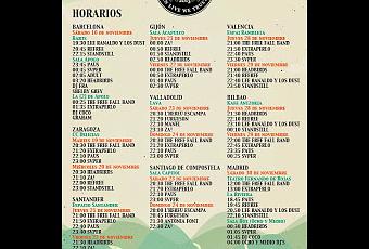 Ya hemos hablado en varias ocasiones sobre el Primavera Sound Touring Party, ese festival itinerante que tendrá su propio reality y que del 16 al 30 de noviembre se celebrará en Barcelona, Zaragoza, Santander, Gijón, Valladolid, Santiago, Valencia, Bilbao y madrid, con actuaciones de gente como Lee Ranaldo, Refree, Standstill, Manel o Za! A continuación puedes clickar en la imagen para agrandarla y consultar los horarios.