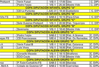 Horarios fútbol sala base en Ourense, del 31 de Marzo al 6 de Abril (Copa y liga)Horarios fútbol sala base en Ourense, del 31 de Marzo al 6 de Abril (Copa y liga)Futbol Base y mas