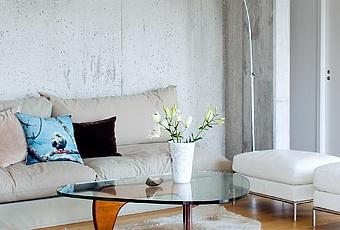 A veces me suele dar por ojear páginas web de decoración en idiomas que no entiendo ni papa, como es el caso de Bo-bedre. Es una página noruega, y de vez en cuando nos muestra cosas interesantes. Una de ellas me pareció la casa que os muestro a continuación, con paredes en hormigón visto. Puede parecer bastante frío, pero creo que en este caso han conseguido una calidez bastante aceptable.