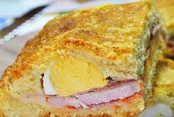 Eso sí, salvando las distancias, hay algo que ambos tienen en común. Que el relleno está hecho a mi gusto: con el chorizo justo (tirando a poco, cortado en lonchas bien finas), con el lomo y el jamón, también, cortados finos (nada de tacos inmensos de embutido difíciles de tragar), mucho huevo cocido y bien de masa.