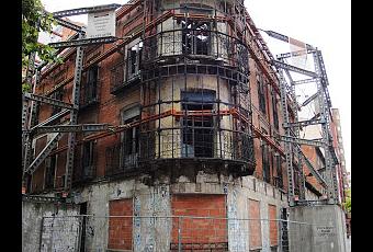 No obstante, tras llegar a una cuerdo entre las partes, el año pasado obtuvo la correspondiente licencia de obras tras varios proyectos desestimados. Así, el futuro de ese bloque será respetar la portada de ladrillo existente y levantar una torre de viviendas de modo retranqueado de manera que visualmente la nueva construcción vaya en paralelo a la contigua existente.Su fachada, que fue limpiada de los carteles que la cubrían en 2010, está anclada a una antiestética estructura metálica desde hace más de una década.