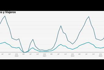 Con los datos en la mano, la cifra de viajeros de 2023 es idéntica a la de 2019 (18,8 millones), con una tendencia muy positiva con respecto a 2022 (14,9 millones).