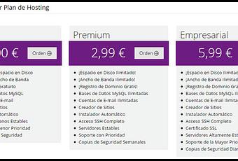 Un plan premium de hosting ilimitado donde podremos alojar y crear nuestras webs y un plan empresarial ideal para aquellas empresas que soportan un gran tráfico y necesitan un gran espacio en disco.
