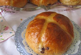 Hace tiempo que tenía guardada en mi carpeta de pendientes la receta de estos bollos, que en algunos países son típicos de Pascua, y suelen comerse el día Viernes Santo, de ahí esa cruz que los corona, como simbolo de la crucifixión. Hasta ahora nunca encontré el momento de hacerlos, pero al fin este año lo he conseguido... y seguro que los repetiré!