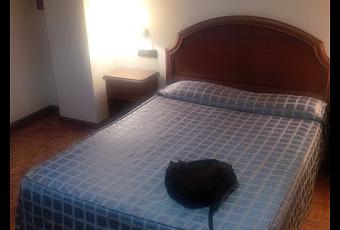 Junto a la puerta de entrada hay un maletero de madera, apoyado en una pared bastante maltratada con golpes y arañazos de otras maletas. Sobre él, un display digital para el aire acondicionado, aunque no conseguimos que la temperatura de la habitación suba al nivel que le pedimos. Las luces del display, que siempre permanecen encendidas -incluso apagado- iluminan demasiado la habitación de noche. Tanto en el salón, como en el dormitorio (y en el baño) hay radiadores para la noche...